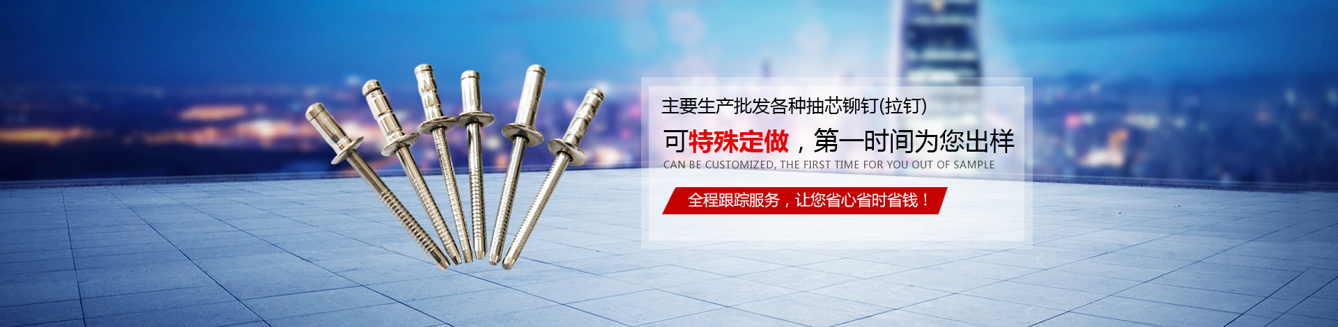 年產(chǎn)量達2億支以上。 主要生產(chǎn)批發(fā)各種抽芯鉚釘(拉釘),產(chǎn)品廣泛使用于集裝箱,航空箱,機箱機柜,酒盒,家具,建筑,汽車,軌道交通,飛機制造等諸多行業(yè)。是阿里巴巴的10多年誠信會員,是華為、臺達等大企業(yè)的誠信合作供應商。